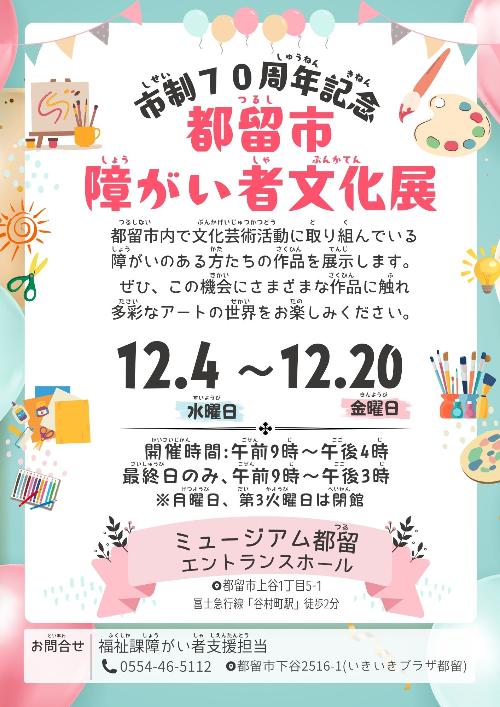 市制70周年記念都留市障がい者文化展の開催について