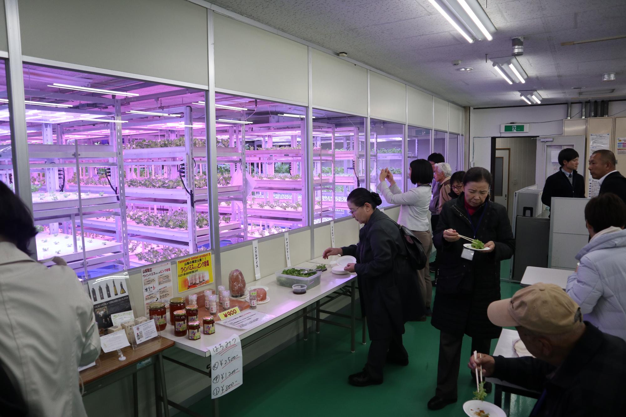 調味料をかけなくてもしょっぱい”アイスプラント”や、日持ちする”レタス”など、水耕栽培ならではの野菜を試食。