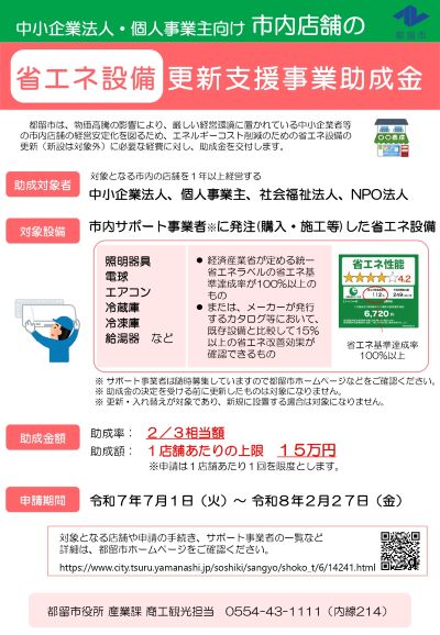 都留市中小企業等店舗省エネ設備更新支援事業助成金